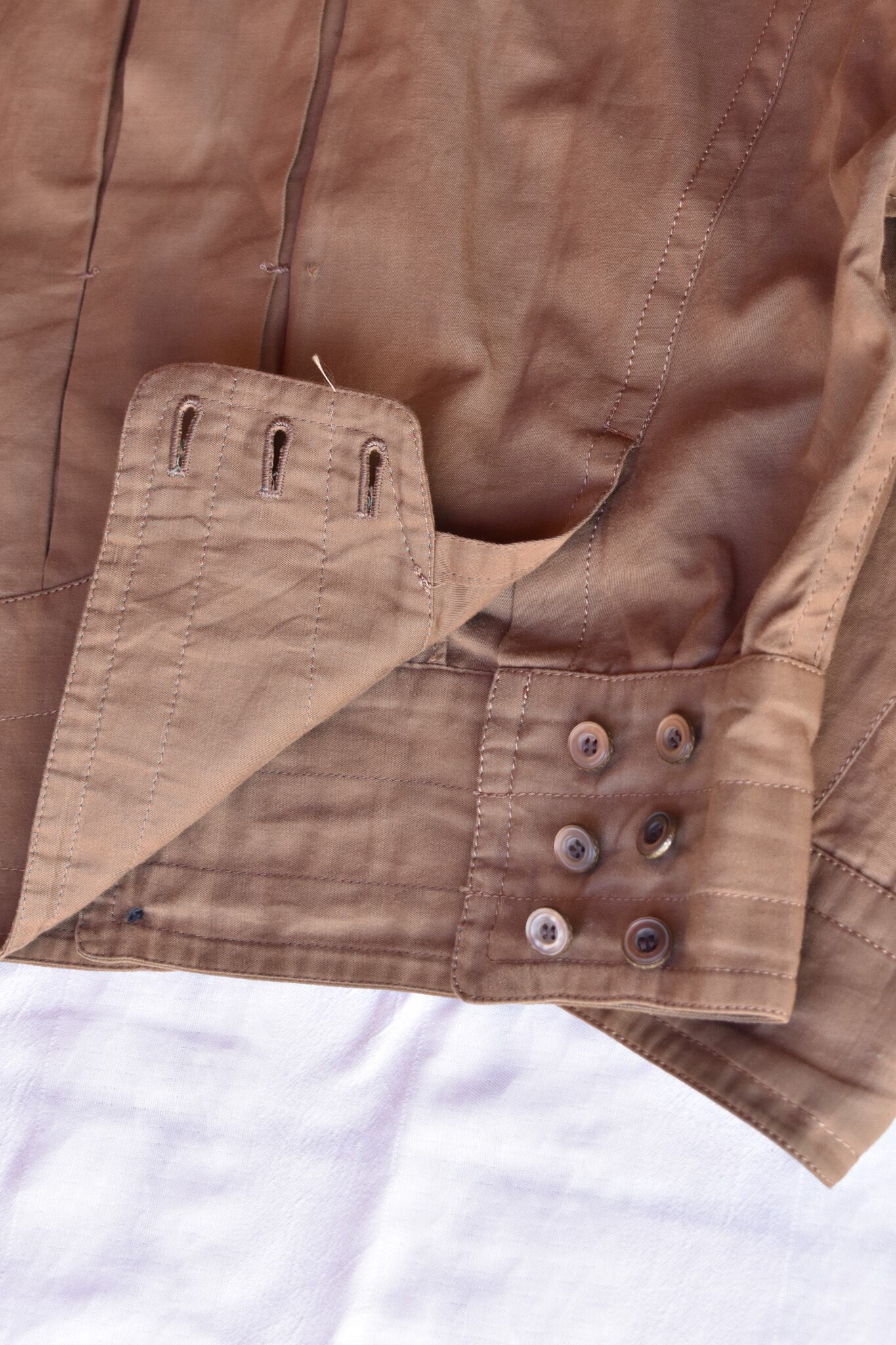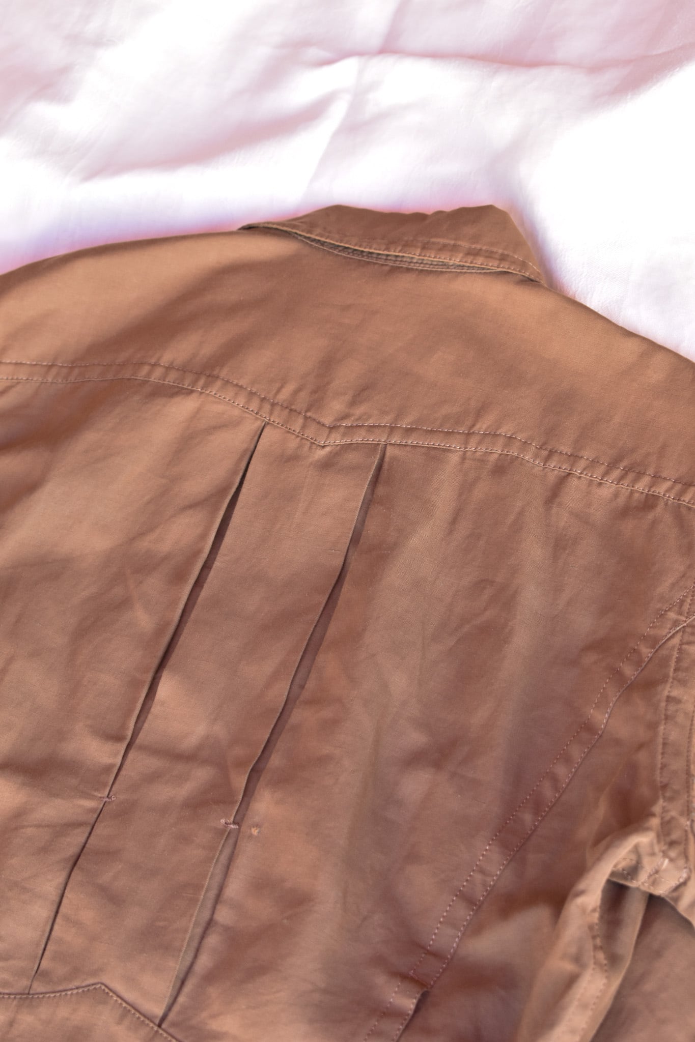 後ろ身頃のタックをつなぐ糸が一カ所切れております。